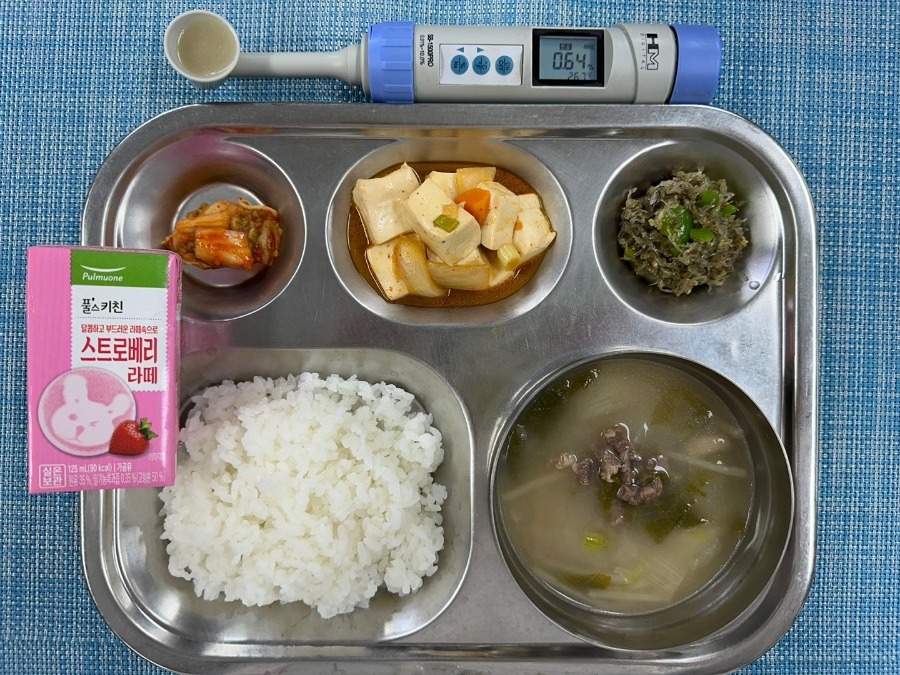 24년 9월 26일(목) : 쌀밥 사골우거지국 두부조림 멸치피망볶음 배추김치 딸기우... [2024-09-26]